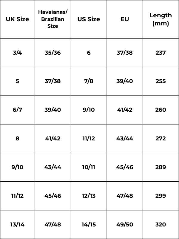 - Please try your Havaianas on as soon as you get them. • Click here to see the official guidance from Havaianas.