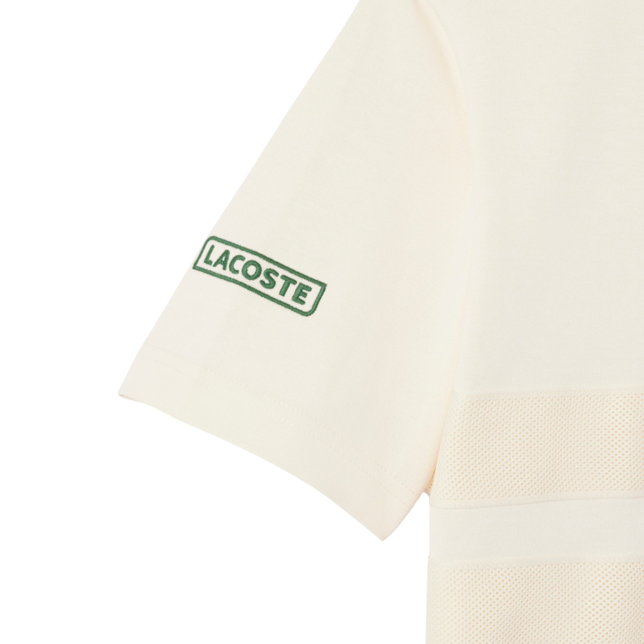 - Lacoste branding on the right sleeve