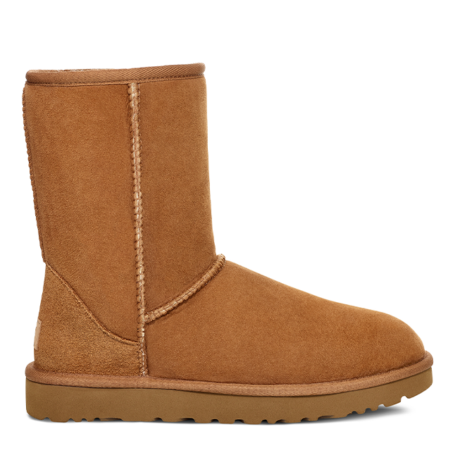 Refresh your footwear collection with the Classic Short II boots by UGG®. This stylish design features an embossed leather branding badge to the heel, as well as Silkee suede uppers, a Treadlite by UGG™ outsole, and a soft foam insole, with genuine sheepskin lining that naturally wicks away moisture and helps keep the feet dry and cosy. Step out in style with these fashionable yet durable boots.